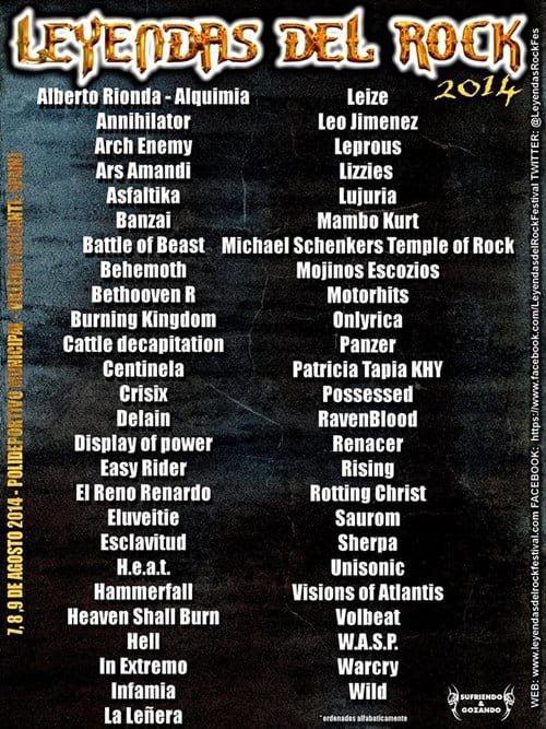 Hace pocos días que se dio a conocer el cartel definitivo del Leyendas del Rock 2.014, 7, 8 y 9 de agosto, en el Polideportivo Municipal de Villena (Alicante), ahora la organización publica la distribución por escenario.