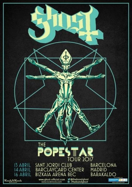 El próximo mes de abril GHOST celebrará tres grandes rituales en nuestro país. Madrid, Barcelona y Barakaldo serán los escenarios elegidos para que la banda sueca comulgue con sus fieles seguidores, con un montaje espectacular dentro de su gira europea “The Popestar Tour 2017”.