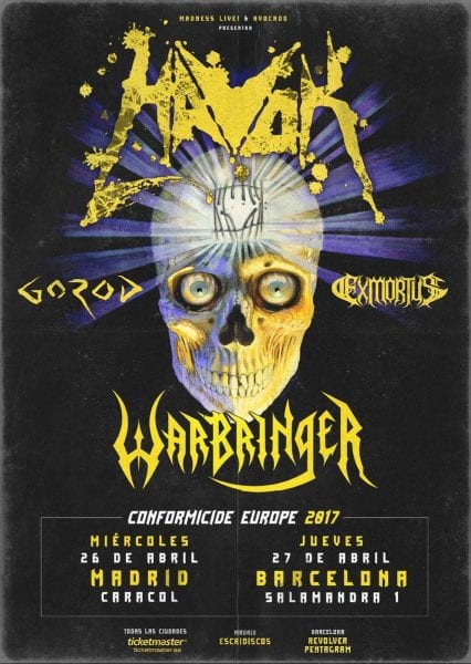 El thrash metal estadounidense llega de la mano de HAVOK. La banda, actualmente inmersa en el próximo lanzamiento de su nuevo disco, estará en Madrid y Barcelona los próximos 26 y 27 de Abril, respectivamente.