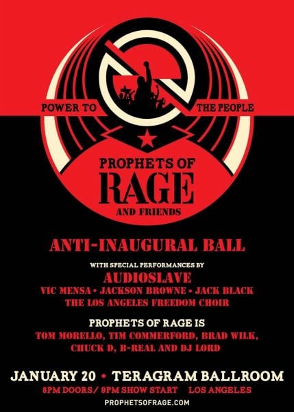 AUDIOSLAVE se reunirán sobre el escenario para actuar casi una década después, el próximo 20 de enero en el Teragram Ballroom de Los Angeles en el Anti-Inaugural Ball, un evento en protesta del comienzo del mandato oficial del próximo presidente de Estados Unidos, Donald Trump.