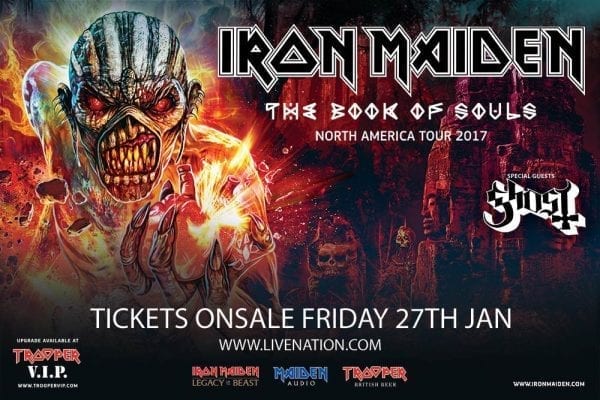 IRON MAIDEN han confirmado que ampliarán su gira “The Book Of Souls” este verano, haciendo una serie de conciertos en grandes estadios de Norteamérica. Estas son las fechas que han confirmado, en las que les acompañarán los suecos GHOST:
