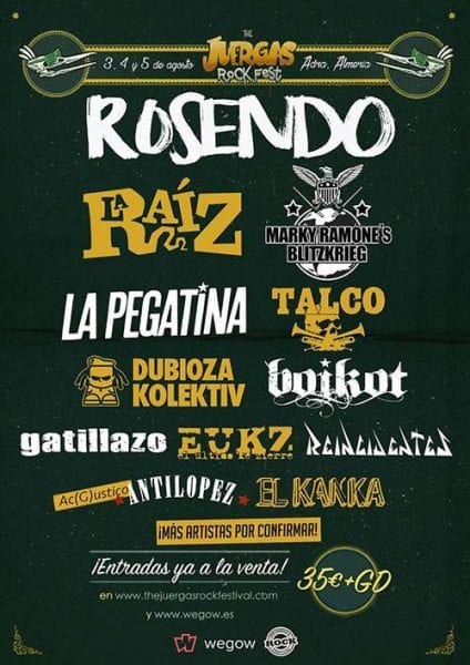 Entradas a la venta por 35€ más gastos en thejuergasrockfestival.com.