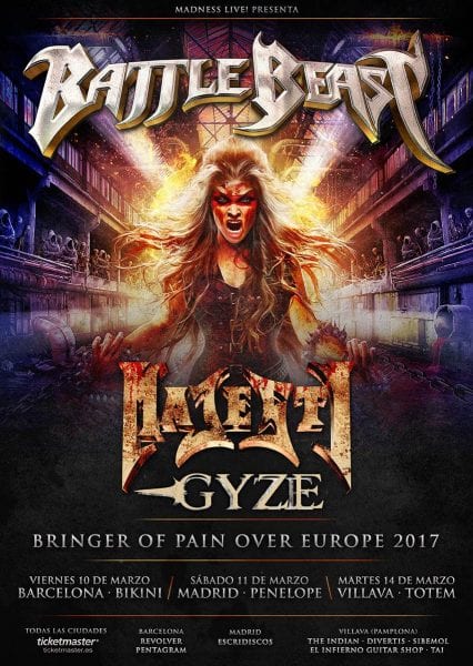 Os recordamos que Battle Beast, acompañados de Majesty y Gyze darán en suelo español y el que presentarán su recién estrenado nuevo disco «Bringer Of Pain»:
