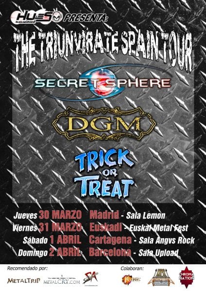 Los amantes del Power Metal están de enhorabuena. En apenas unos días nos vista la gira formada por las bandas italianas SECRET SPHERE, DGM y TRICK OR TREAT, dentro de la gira europea Triumvirate Tour 2017. Como invitados SKELETOON. La fecha de Madrid ha sufrido el cambio de sala, el concierto se celebrará en la Sala Silikona.