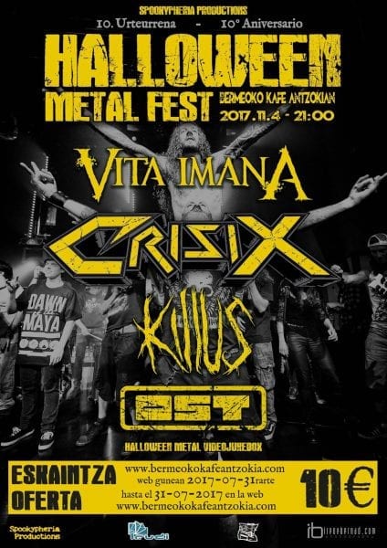 VITA IMANA, CRISIX, KILLUS y OST completan el cartel del 10º Aniversario del HALLOWEEN METAL FEST, el próximo 4 de noviembre en el Kafe Antzokia de Bermeo, Bizkaia.