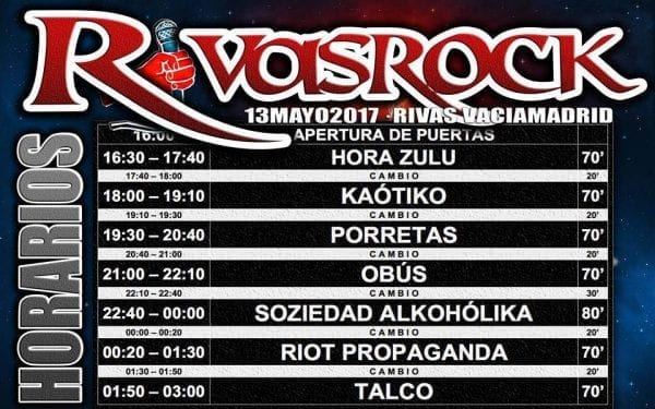 El sábado 13 de mayo, dentro de las fiestas de la localidad Rivas Vaciamadrid, se celebrará la cuarta edición del Rivas Rock. El festival que ya es referencia en la comunidad y fuera de ella, vuelve con más fuerza si cabe.Estos son sus datos: