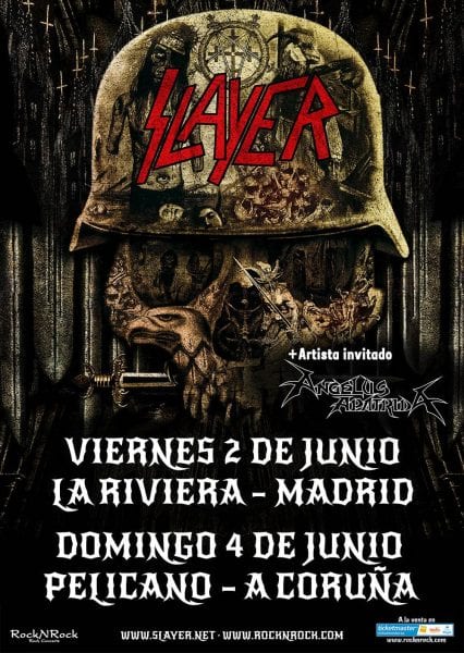 La banda de Albacete ANGELUS APATRIDA será el artista invitado. Pocas bandas de thrash metal tienen tanta capacidad de trabajo como ANGELUS APATRIDA. Gira tras gira, disco tras disco, siguen creciendo y lo van a demostrar junto a SLAYER en Madrid y A Coruña.