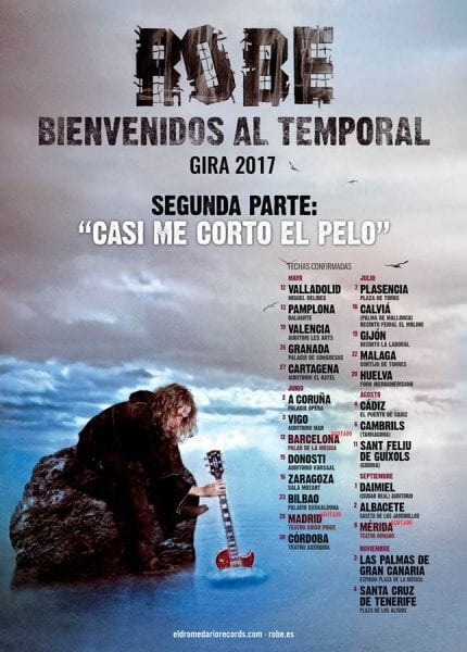 Robe ha anunciado tres nuevos conciertos que se unen a su extensa gira española, cuyo tramo “Ponte a cubierto” responde a los conciertos en pequeñas salas y auditorios, y la segunda “Casi me corto el pelo” a sitios “más grandes” en los que podremos “disfrutar los conciertos de otra manera”, tal y como los ha descrito el propio Robe.