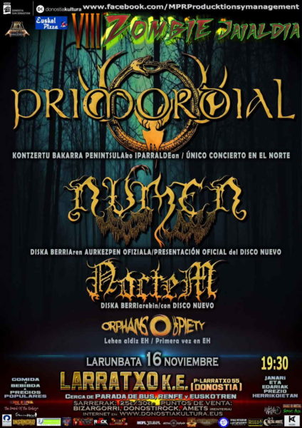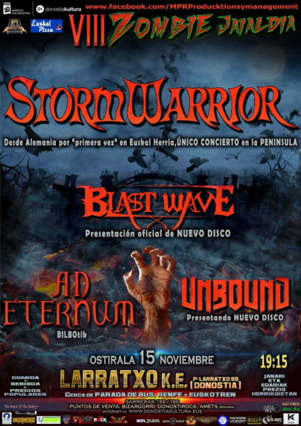 STORMWARRIOR, BLAST WAVE, PRIMORDIAL o NOCTEM son algunas de las bandas que componen el cartel del VIII Zombie Jaialdia.