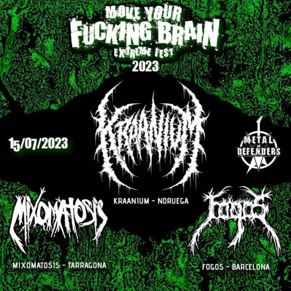 MetalDefenders anuncia la incorporación de Kraanium, Mixomatosis y Fogos al cartel del Move Your Fucking Brain Extreme Fest 2023.