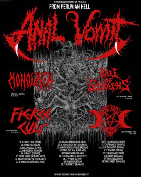 En total serán 13 las fechas que Fierce Cult compartirán con Anal Vomit, una banda que no necesita presentaciones dentro del underground planetario y que cuenta con más de 30 años de carrera devotamente dedicados al metal extremo más violento y carnicero.