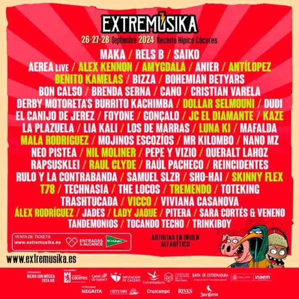 Los días 26, 27 y 28 de septiembre de 2024 se celabrará una nueva edición del festival Extremúsika, que volverá a celebrarse en el Recinto Hípico de Cáceres.
