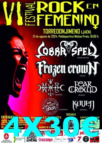 Oferta de entradas 4X30€ en: https://entradium.com/es/events/vi-festival-rock-en-femenino