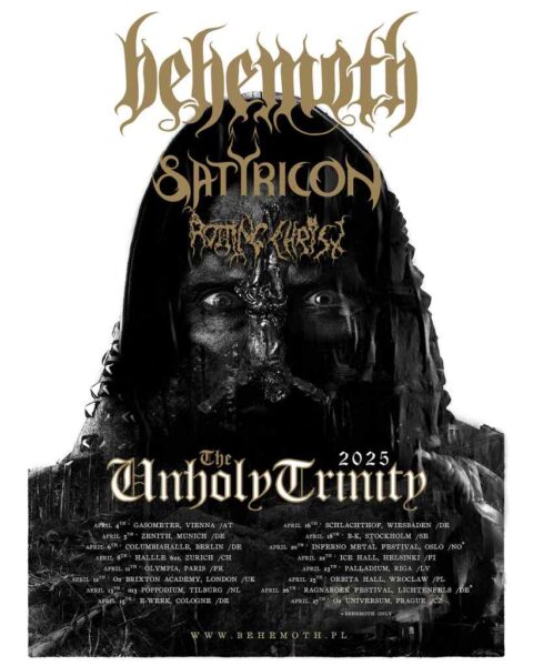 «¡Legiones de Europa! Es ese momento otra vez… Estamos más que encantados de anunciar que vamos a reunir las fuerzas blasfemas de Behemoth, Satyricon y Rotting Christ para la gira europea ‘The Unholy Trinity'».