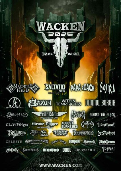 Wacken Open Air 2025 ha confirmado las fechas y la primera tanda de bandas. Será la 34ª edición del festival de Heavy Metal y se celebrará del 30 de julio al 2 de agosto de 2025 en la localidad alemana de Wacken, con MACHINE HEAD como uno de sus cabezas de cartel.