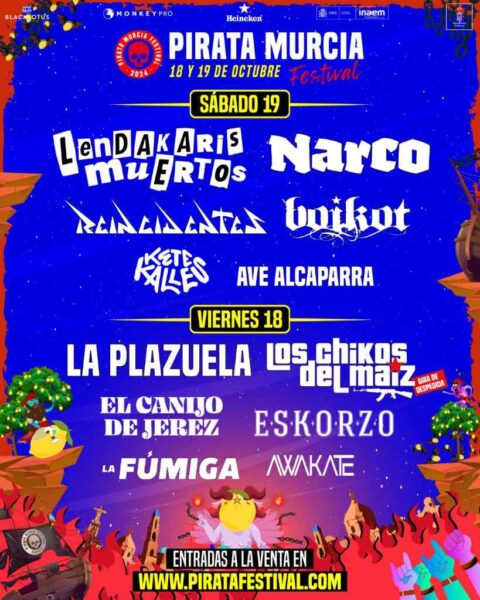 El PIRATA MURCIA FESTIVAL 2024 Contará con Boikot, La Plazuela, Narco, Reincidentes, Los Chikos del Maíz, El Canijo de Jérez, Eskorzo o Lendakaris Muertos