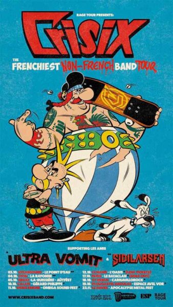 La banda de Thrash Metal CRISIX ha anunciado su gira por Francia «The Frenchiest Non-French Band Tour», es decir, «la gira del grupo no francés más francés» con ULTRA VOMIT y SIDILARSEN y que llevará a cabo en octubre. Para ello ha creado un divertido cartel que rinde homenaje a los personajes más icónicos del cómic francés.