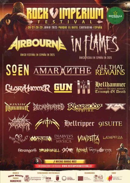 Rock Imperium Festival 2025, que se celebrará del 26 al 29 de junio en el Parque de la Cuesta del Batel en Cartagena, ha revelado la segunda tanda de grupos confirmados, con los australianos AIRBOURNE como nuevos cabezas de cartel.