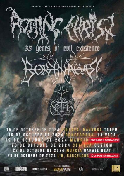 La gira «35 years of evil existence», encabezado por el grupo griego de Black Metal ROTTING CHRIST, escoltado por BORKNAGAR y SETH llegará en cuestión de días a España. Las bandas han agotado entradas en el concierto de Madrid.