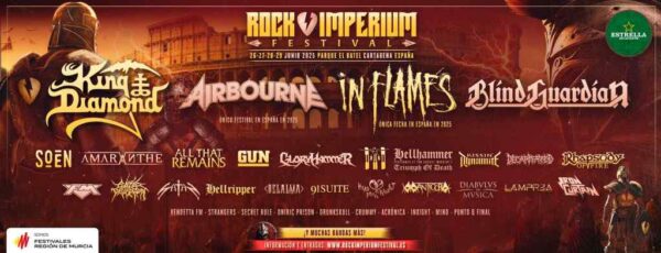 «Dos verdaderas instituciones dentro de la historia del metal como son King Diamond y Blind Guardian lideran las nuevas confirmaciones del Rock Imperium Festival 2025, que suma ya un total de 35 bandas en su cartel. ¡Y aún quedan muchos más! Cartagena será la capital del rock y el metal este próximo verano, ¿te lo vas a perder? ¡Claro que no!»