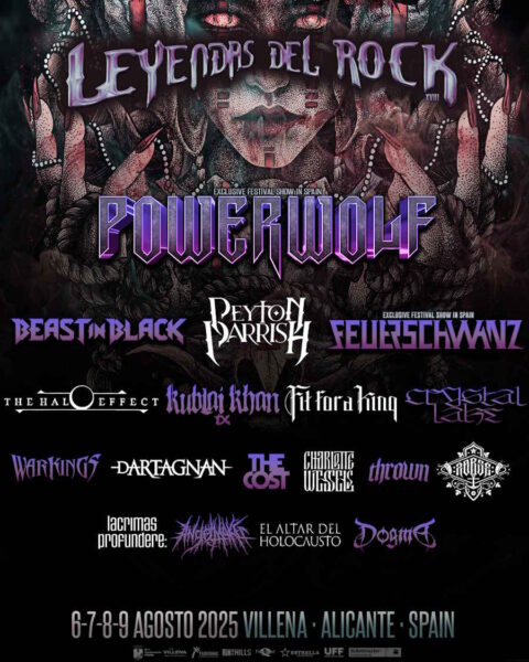 Leyendas del Rock 2025 ha realizado su segunda tanda de confirmaciones, con nueve bandas que se incorporan a su cartel. Los nuevos artistas son Peyton Parrish, THE HALO EFFECT, KUBLAI KHAN TX, CRYSTAL LAKE, WARKINGS, ANGELMAKER, LACRIMAS PROFUNDERE, EL ALTAR DEL HOLOCAUSTO y DOGMA.