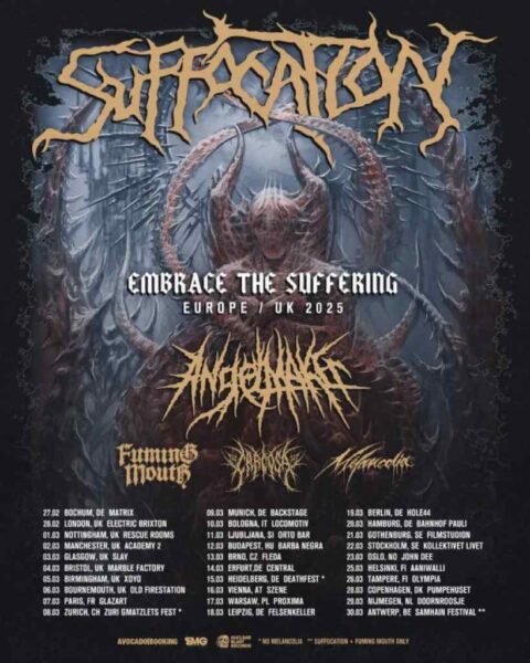 SUFFOCATION acaba de anunciar una nueva gira europea denominada «Embrace The Suffering» para febrero y marzo de 2025. De momento no hay ninguna fecha confirmada por la península.