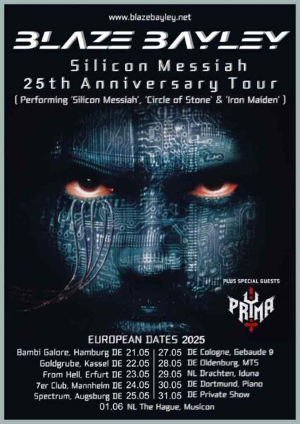 Blaze Bayley, el ex cantante de IRON MAIDEN, se embarcará en una gira europea la próxima primavera para celebrar el 25 aniversario de su primer lanzamiento, «Silicon Messiah». En esta gira, Blaze tocará canciones de «Silicon Messiah», temas nuevos de su último álbum «Circle Of Stone» y canciones clásicas de IRON MAIDEN de su época con la banda.