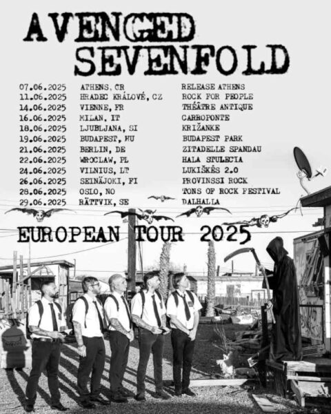 AVENGED SEVENFOLD se embarcará en una gira europea en junio de 2025. La gira constará de 12 fechas en algunos de los festivales de rock más importantes del continente, incluidos Tons Of Rock en Noruega, Rock For People en la República Checa…
