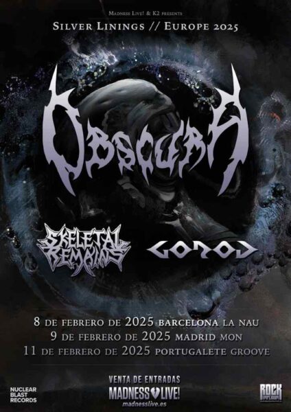 La destacada banda alemana de death metal progresivo, Obscura, se embarcará en una extensa gira europea a partir de febrero de 2025, acompañada por las reconocidas agrupaciones Skeletal Remains y Gorod. Esta serie de conciertos promete ofrecer una experiencia musical intensa y técnica para los aficionados al metal extremo.