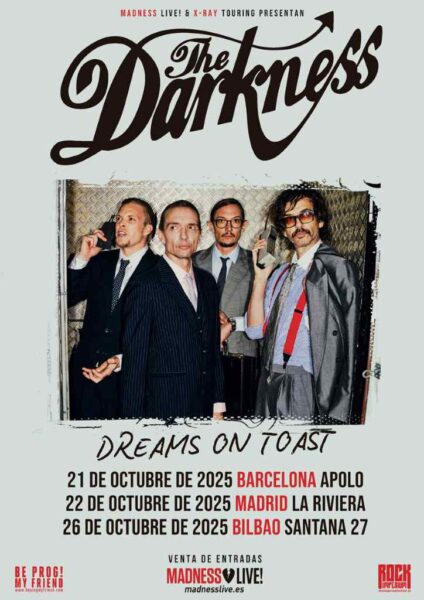 La reconocida banda británica de rock, The Darkness, ha confirmado una serie de conciertos en España para el próximo mes de octubre de 2025. Estas presentaciones forman parte de la gira de promoción de su más reciente álbum, «Dreams On Toast».