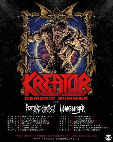 A continuación, se detallan las fechas confirmadas para la gira de Kreator en el verano de 2025: