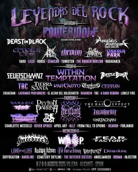 El festival Leyendas del Rock 2025 ha confirmado al grupo neerlandés de Metal Sinfónico WITHIN TEMPTATION como nuevo cabeza, así como una serie de bandas que cierran el cartel a falta de dos grupos por confirmar. Los demás artistas confirmados en esta última tanda son: