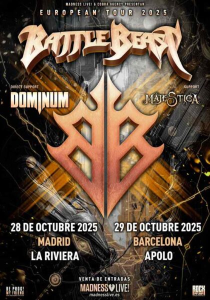 Los seguidores españoles de Battle Beast podrán disfrutar de su enérgico directo en las siguientes fechas: