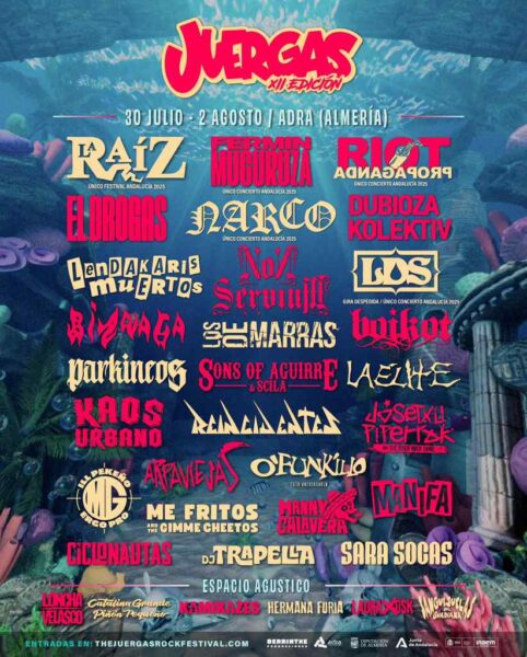 El reconocido The Juergas Rock Festival ha anunciado el cartel completo de su duodécima edición, que se llevará a cabo del 30 de julio al 2 de agosto de 2025 en la Playa El Censo de Adra, Almería. Este año, el festival contará con la participación de 33 artistas, destacando actuaciones exclusivas y regresos esperados en el panorama musical.