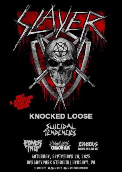 La icónica banda estadounidense de Thrash Metal, Slayer, ha confirmado una actuación exclusiva en Estados Unidos para el 20 de septiembre de 2025. Este concierto se llevará a cabo en el Hersheypark Stadium de Hershey, Pensilvania, un recinto con capacidad para 16.000 personas.
