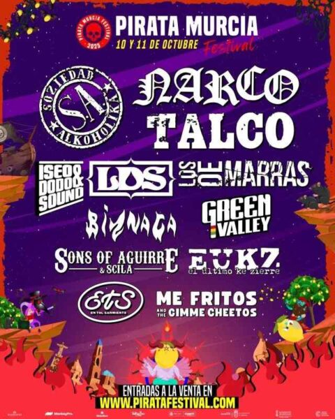 Las entradas para el Pirata Murcia Festival 2025 ya están disponibles a través de la plataforma Compralaentrada.com. El precio de lanzamiento es de 25 euros, con incrementos progresivos conforme se agoten los tramos promocionales.