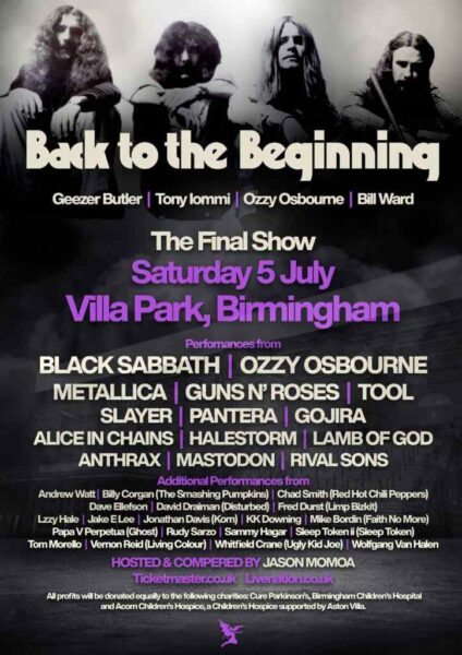 La legendaria banda Black Sabbath, liderada por Ozzy Osbourne, ofrecerá su esperado concierto de despedida titulado «Back to the Beginning», que se celebrará el 5 de julio de 2025 en el estadio Villa Park de Birmingham. Este evento marcará el reencuentro histórico de la formación original: Ozzy Osbourne, Tony Iommi, Geezer Butler y Bill Ward.