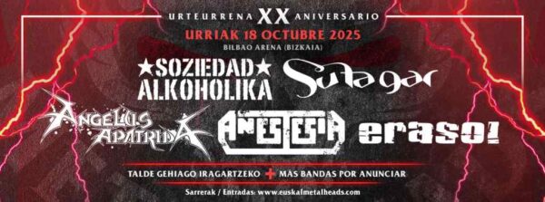 El festival, que conmemora el 20.º aniversario de la asociación Euskal Metalheads Kultur Elkartea, contará con un cartel potente donde destacan bandas como Soziedad Alkoholika, Su Ta Gar, Angelus Apatrida, Eraso! y Anestesia, junto con una última banda aún por confirmar.