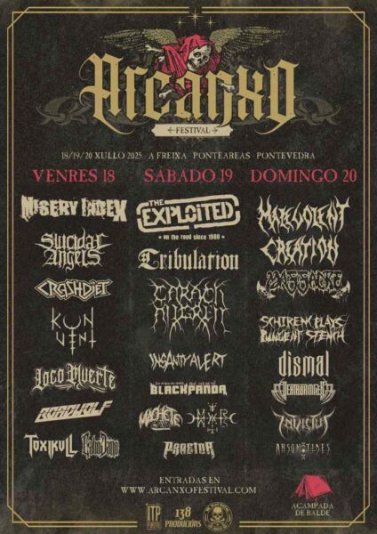 El Arcanxo Festival contará con acampada gratuita junto a la playa fluvial, creando un entorno natural ideal para disfrutar de tres jornadas intensas de metal extremo, con la presencia de bandas como Suicidal Angels, Misery Index, The Exploited, Carach Angren o Schirenc Plays Pungent Stench.