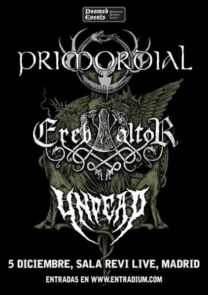 El próximo 5 de diciembre, los fans del metal extremo tienen una cita imprescindible en la Sala Revi Live de Vicálvaro. Gracias a Doomed Events, la legendaria banda PRIMORDIAL regresa a los escenarios madrileños acompañada por los potentes EREB ALTOR y UNDEAD.