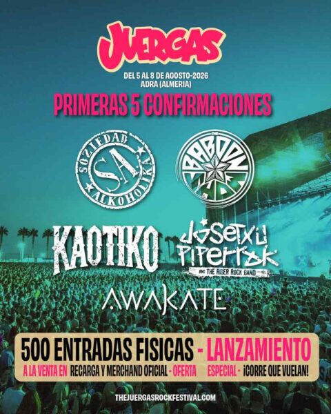 En resumen, la organización de The Juergas Rock Festival XIII ya se mueve en firme: primeras bandas confirmadas, afianzamiento de su ubicación en Adra y una preventa especial limitada a 500 entradas. Se anticipa una edición con alto interés y acceso preferente para quienes actúan rápido.