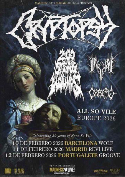 La veterana banda canadiense de Death Metal técnico, Cryptopsy, regresa a España en febrero de 2026 para festejar el 30º aniversario de su influyente segundo álbum, None So Vile (1996). Esta gira especial incluirá tres fechas en salas emblemáticas del país: Barcelona, Madrid y Portugalete.