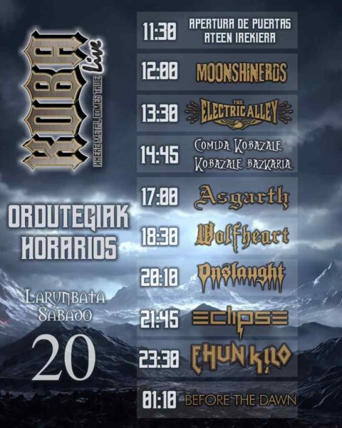 La cuarta edición del festival vizcaíno Koba Live se celebrará el 20 de septiembre de 2025 en la localidad de Abadiño. La organización ha desvelado los horarios por primera vez, consolidando esta cita anual como una jornada imprescindible de metal.