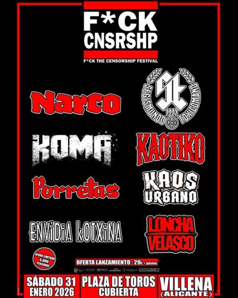 La Plaza de Toros Cubierta de Villena (Alicante), conocida como La Cúpula del Trueno, ya ruge para recibir el F*ck Censorship el sábado 31 de enero de 2026. El festival confirma un line-up rotundo y activa la venta de entradas para una nueva edición que promete altas dosis de punk rock, rock y metal.