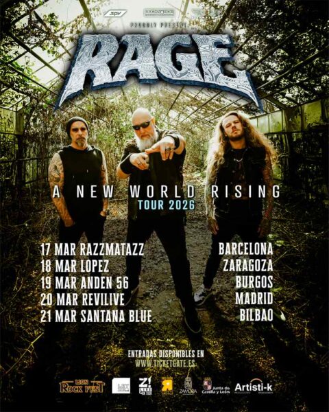 La veterana formación alemana Rage desembarcará en España el próximo marzo con su gira A New World Rising Tour 2026, en la que presentarán su nuevo álbum A New World Rising, disponible desde el 26 de septiembre de 2025.