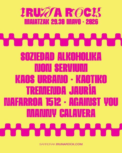 El festival ha anunciado la incorporación de cuatro nuevos nombres al cartel: SOZIEDAD ALKOHOLIKA, KAOS URBANO, NAFARROA 1512 y MANNY CALAVERA. Estas cuatro bandas se suman al primer cartel anunciado y compuesto por NON SERVIUM, KAOTIKO, TREMENDA JAURÍA y AGAINST YOU.