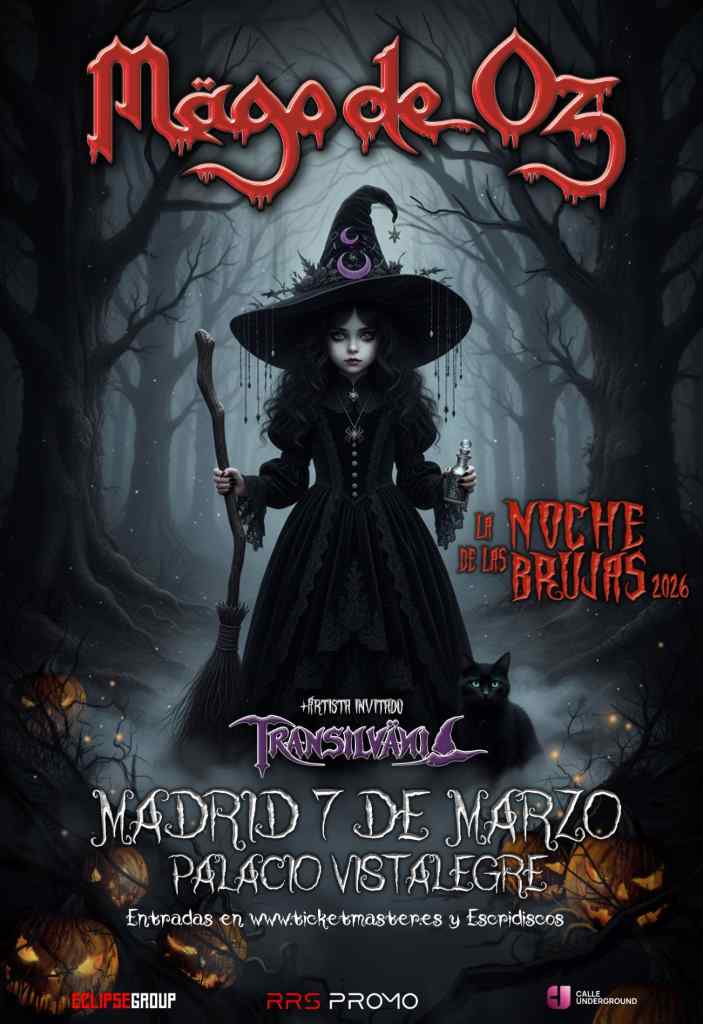 La reconocida formación de folk metal Mägo de Oz ha anunciado el concierto que dará inicio a su próxima gira titulada “La Noche de las Brujas”. La cita tendrá lugar el sábado 7 de marzo en el recinto del Palacio Vistalegre de Madrid, poco después del lanzamiento de su nuevo álbum ‘Malicia, la noche de las brujas’.