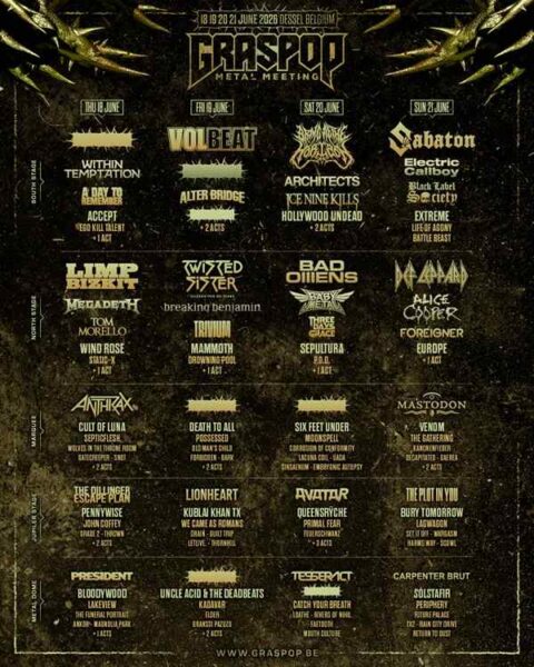 Con esta actualización, Graspop 2026 se posiciona nuevamente como una de las citas imprescindibles del calendario del metal europeo, ofreciendo una combinación de clásicos del género, propuestas emergentes y un cartel que promete cobertura para múltiples públicos dentro del metal y hard rock.