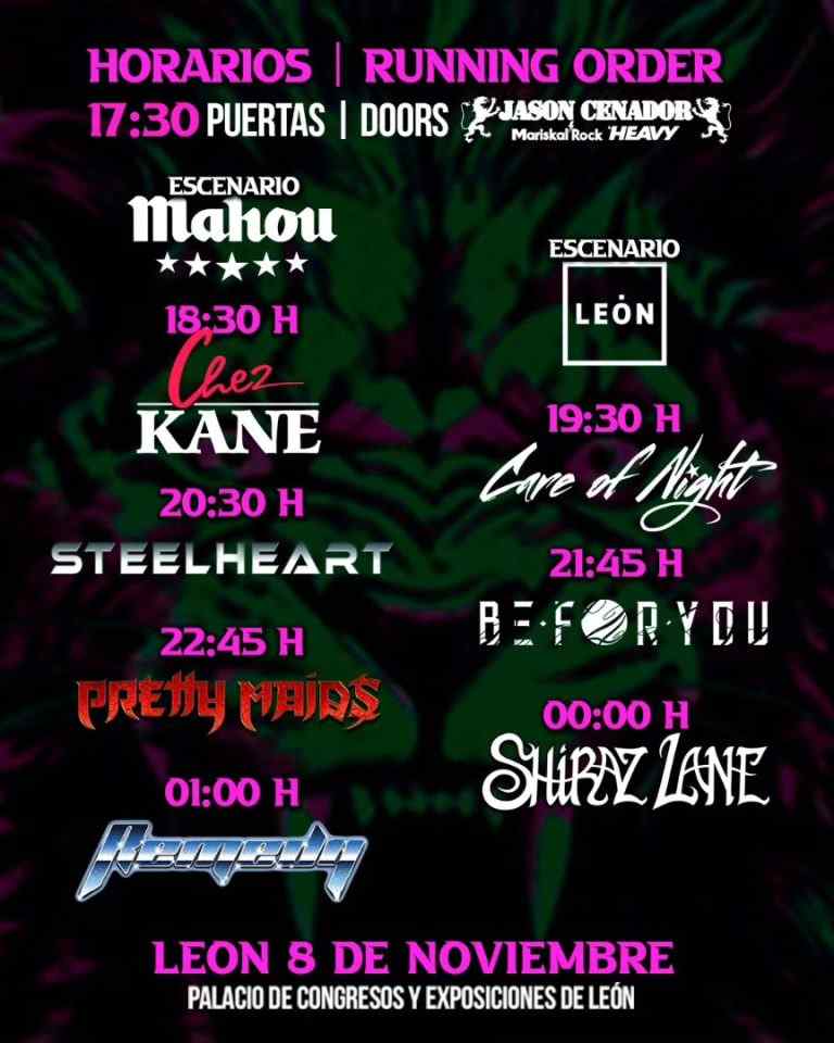 Las formaciones confirmadas que integran el cartel de esta edición incluyen a: Pretty Maids, Steelheart, Shiraz Lane, Chez Kane, Remedy, Before You y Care of Night.