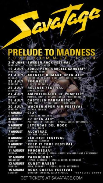 La formación estadounidense de metal progresivo Savatage ha confirmado oficialmente su nueva gira europea titulada “Prelude to Madness”, que se desarrollará durante el verano de 2026.